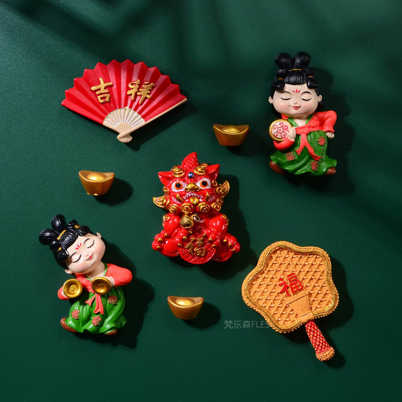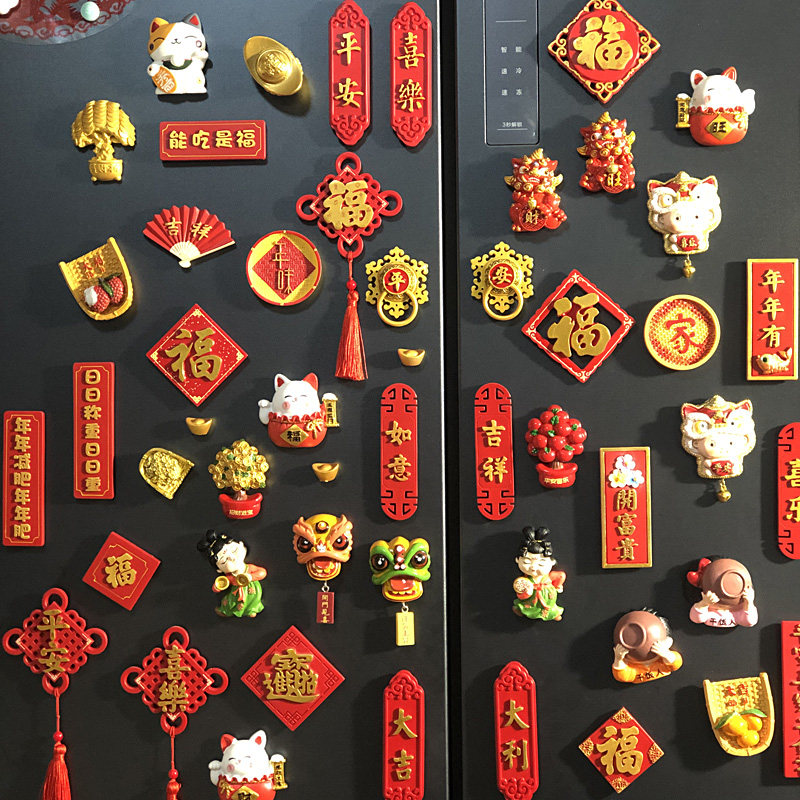 2024 new 3D Solid personality creative New Year's refrigerator patch magnetic sticker magnetic attraction Spring Festival Magnetic patch door sticker Longyear-Taobao