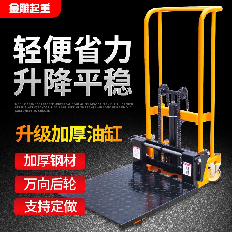 Miniature manual forklift home small lifting car electric hydraulic carrying car cart pallet platform cart stacking high car-Taobao