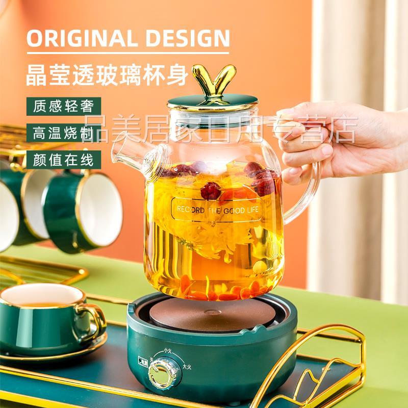 Nordic tea cooking fruit teapot teapot tea set heating light luxury glass afternoon tea set electricity