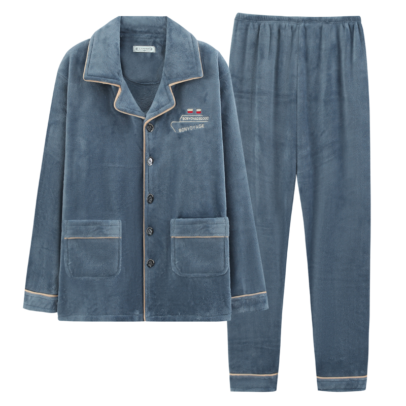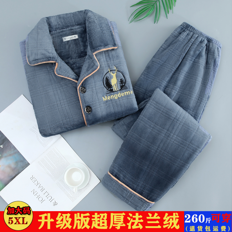 Sleepwear men's winter coral suede gaffer with enlarged yard flannel thicken plus suede warm autumn and winter home suit-Taobao