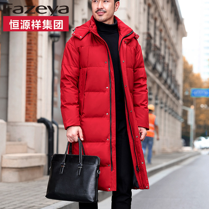 Hengyuan Xiang Group Color Feather Down Men Long-range Thickening Medium-aged Winter Wear Red Cover