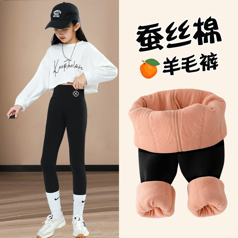 Girl Beats Bottom Pants Plus Suede Autumn Winter Outwear Children Warm Pants All-in Thickened Winter Cotton Pants Big Boy Shark Pants-Taobao