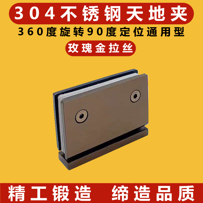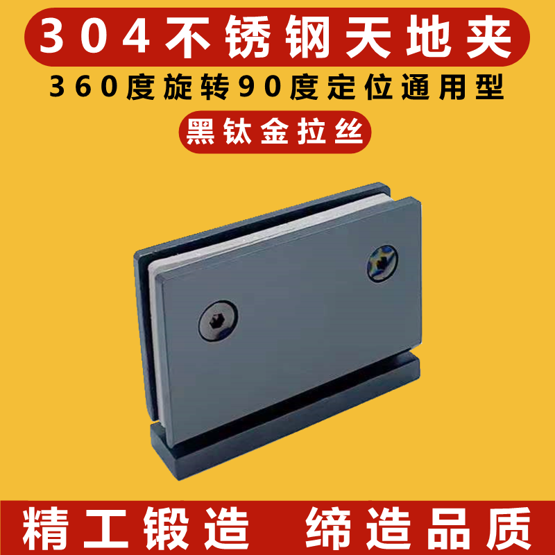 Glass door heaven and earth clip 360 degrees rotary axis 304 stainless steel black bathroom clamp display case upper and lower hinge hinge-Taobao