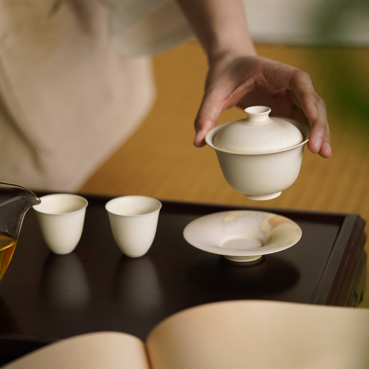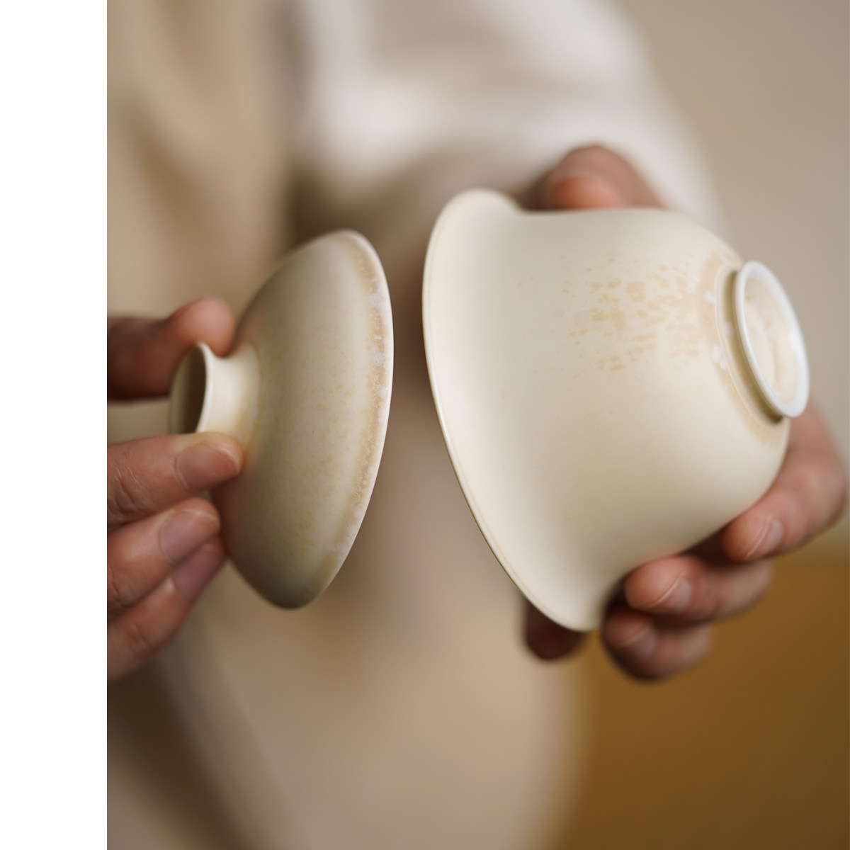 Pastoral View Deed Town Artisanal Cover Bowl Suit Eggshell Pears White Matt Baby Skin Texture Utilita Tea 110ml-Taobao