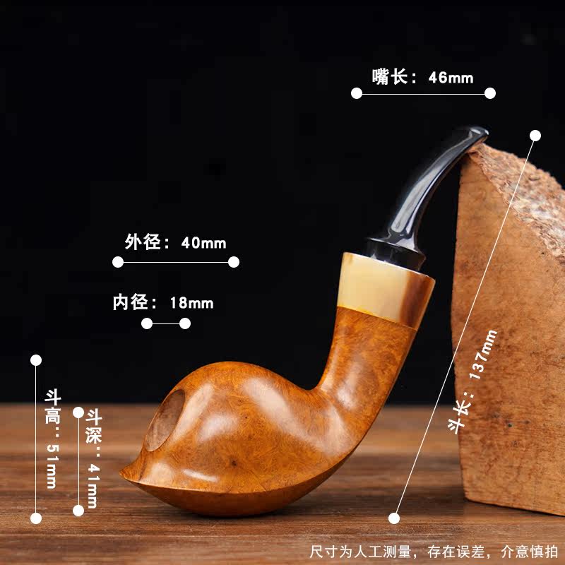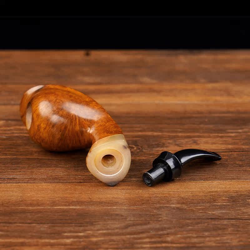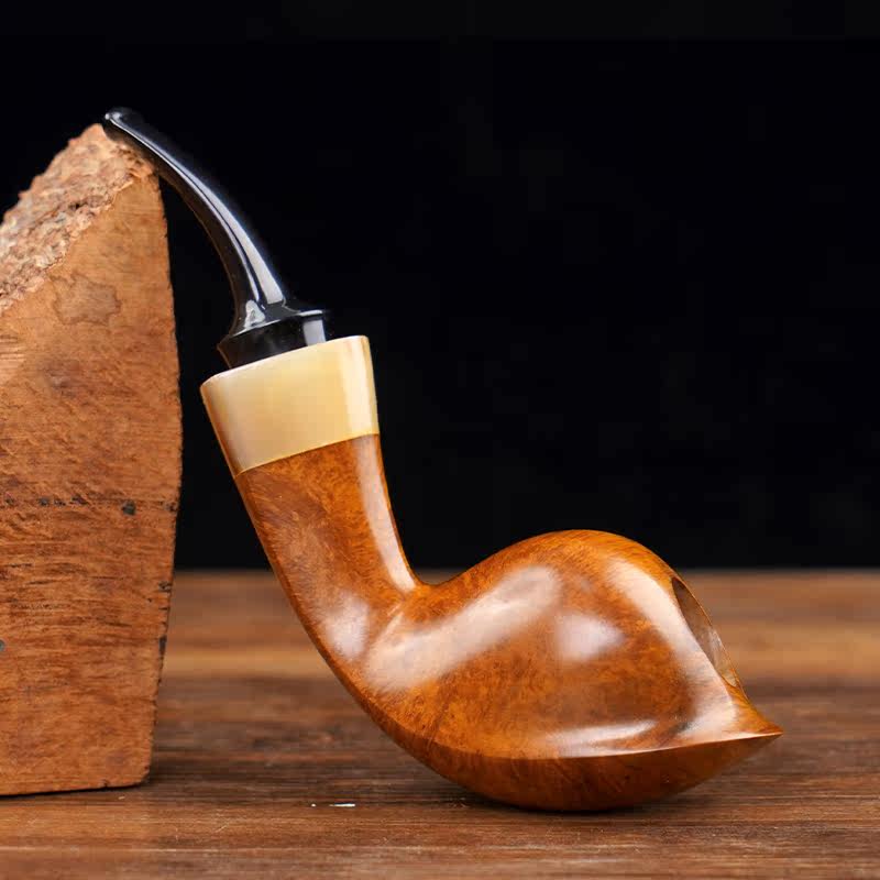 Heather glossy log color handmade horn ring puffer pipe men's old-fashioned solid wood tobacco bag pot