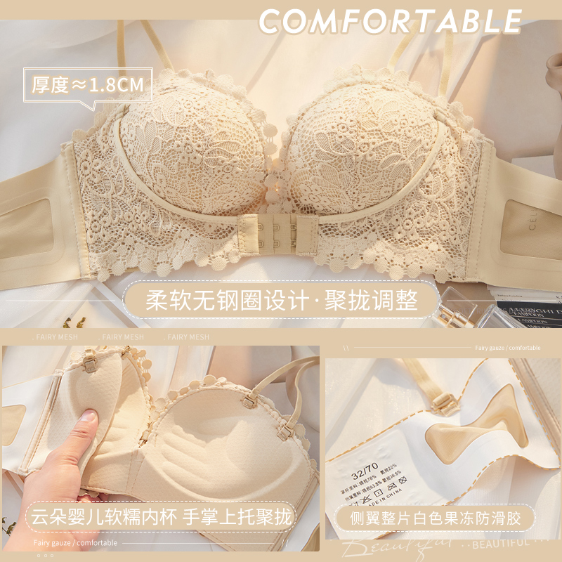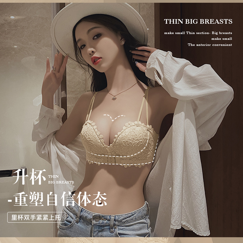 Push-up underwear women's small breasts show big closed breasts anti-sagging brand counter lace bra panties set