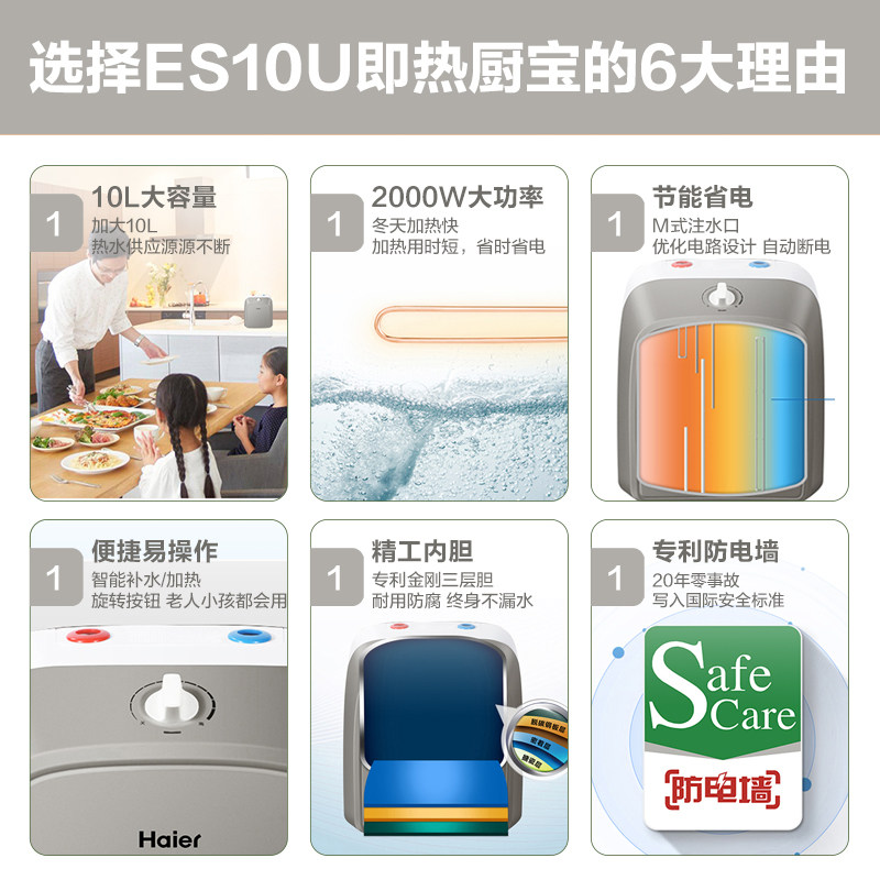 Haier Xiaochefs Baobao Electric Home Kitchen Water Heater God Instrumental Over Hydrothermal Large Capacity Speed Hot 10U Stage Hot Water Bao-Taobao