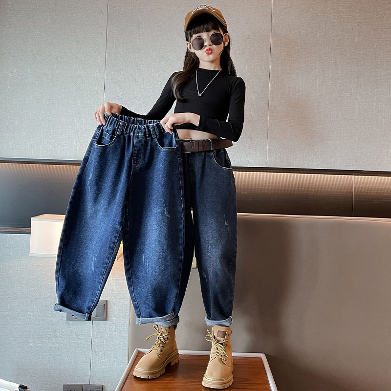 Girls Harem Jeans Spring and Autumn 2024 New Children's Pants Autumn Clothes Girls Big Children Casual Dad Pants Loose