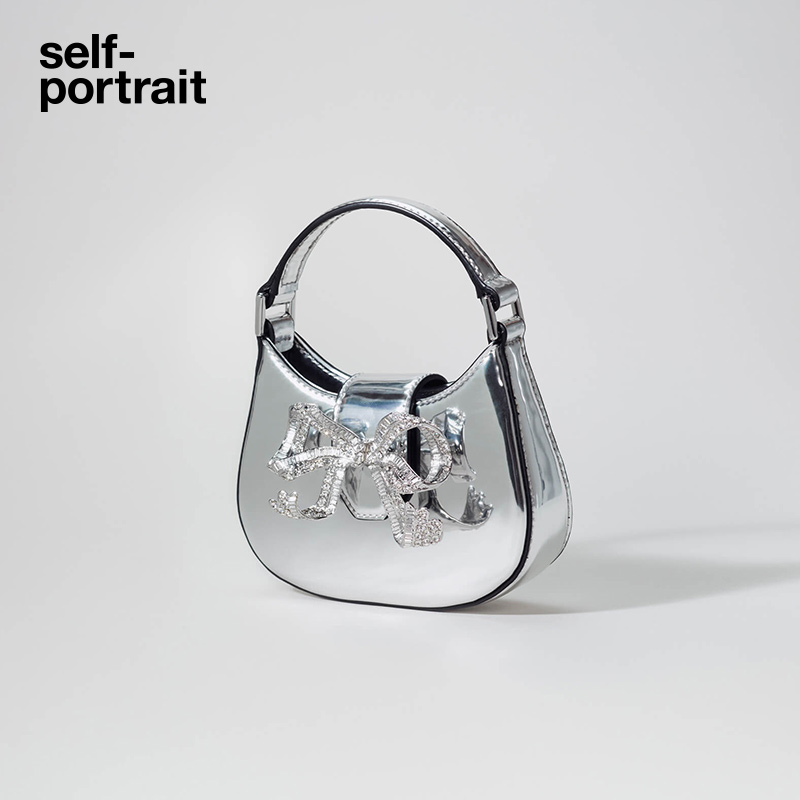 self-portrait 2023 early spring silver micro bow underarm handbag