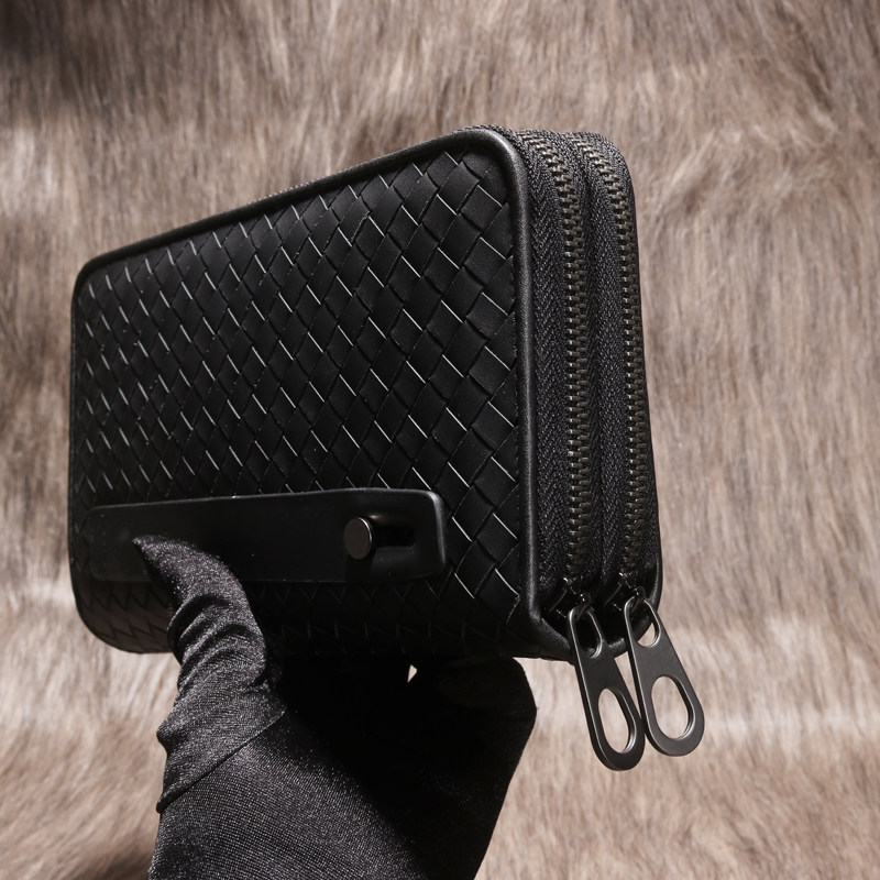 2022 New tide handbag 32 card knitting double zipper handbag leather handbag bag casual male bag