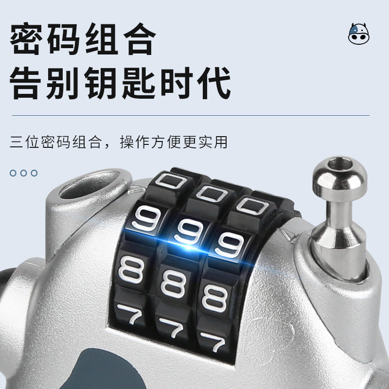 Cow password helmet lock silver cow password helmet lock black four-digit password helmet lock (without lock bag) cow password helmet lock silver metal lock buckle hook black and yellow 2 cows