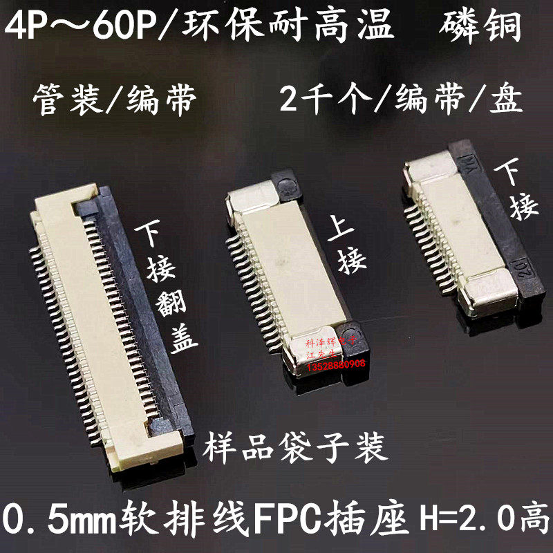 0 5mm pitch FPC connector upper and downward cover 4 6 8 10 20 30 40P FFC soft wiring socket