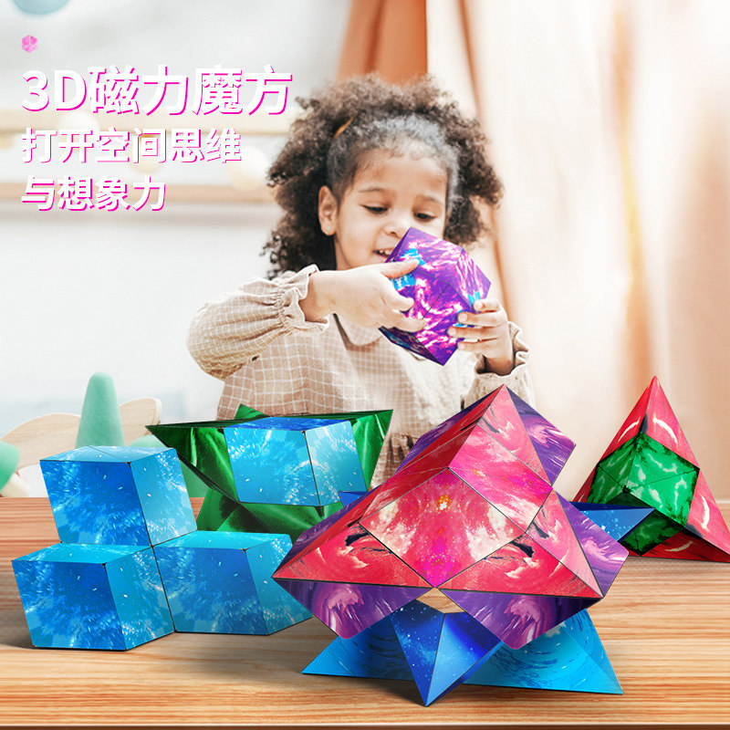 (luxurious 4 pieces) 200 shapes to play creativity 3D space Magnetic magic square (flame red) built-in 36 reinforced magnetic 3D space Magnetic magic square (forest green) built-in 36 reinforced magnetic