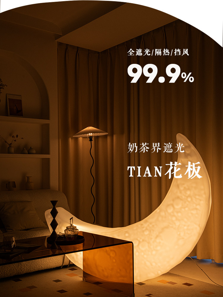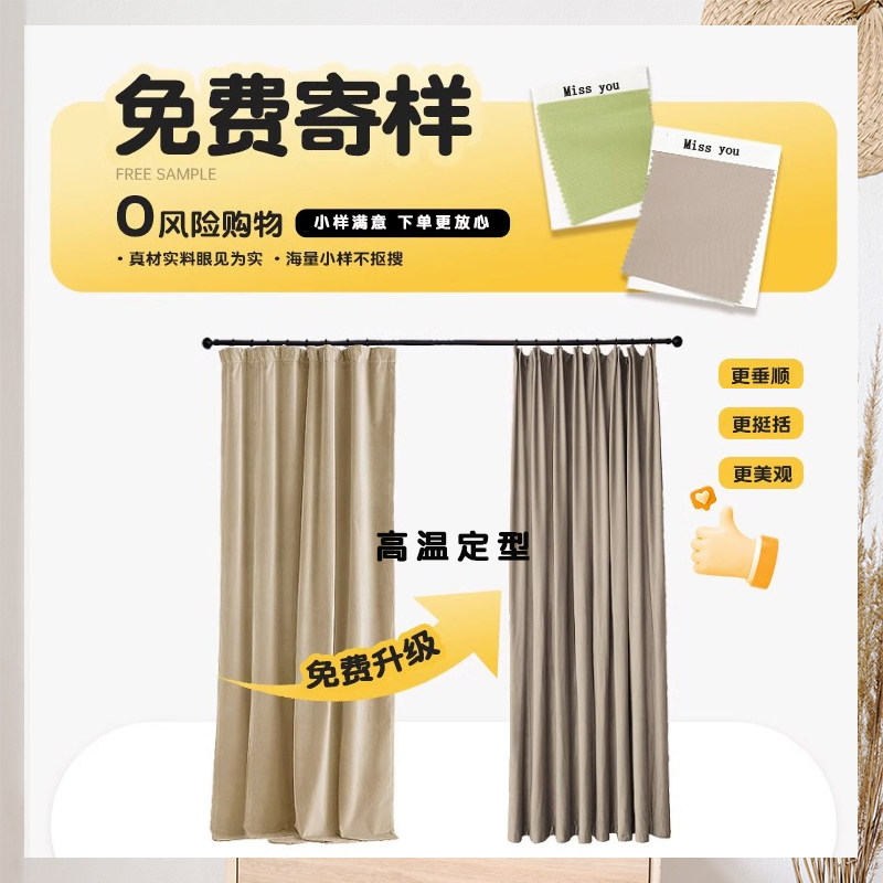 Milk Tea Colour Cream Wind curtains A complete set of rail bedrooms Living room floating windows All shading snow Neil National bag installation-Taobao