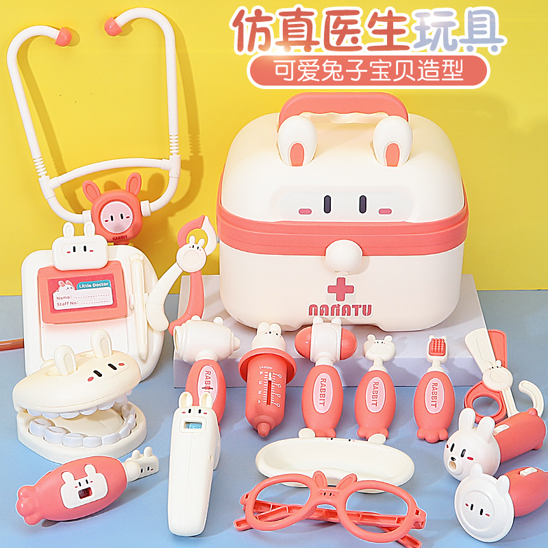 ⭐Guarantee that⭐all options are delivered with a hanging bottle card Oh⭐ new (upgraded version) Nana Rabbit doctor's toy suit (with hanging bottle) - powder ❤shop long recommended❤48 pieces of super-valued packages-with dolls-powder