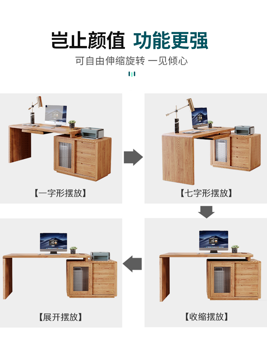 Japanese-style corner solid wood desk bookcase one modern minimalist study telescopic computer desk double home desk