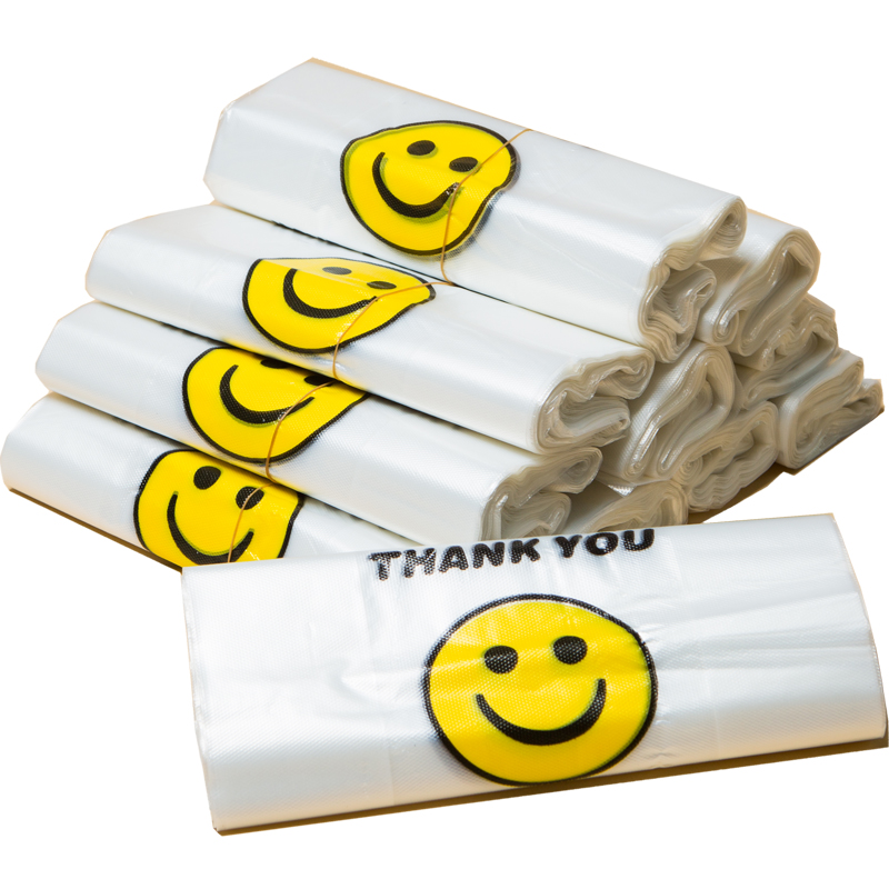 Thickened transparent smiling face plastic bag takeaway food bag commercial packing bag vest shopping bag convenient handbag