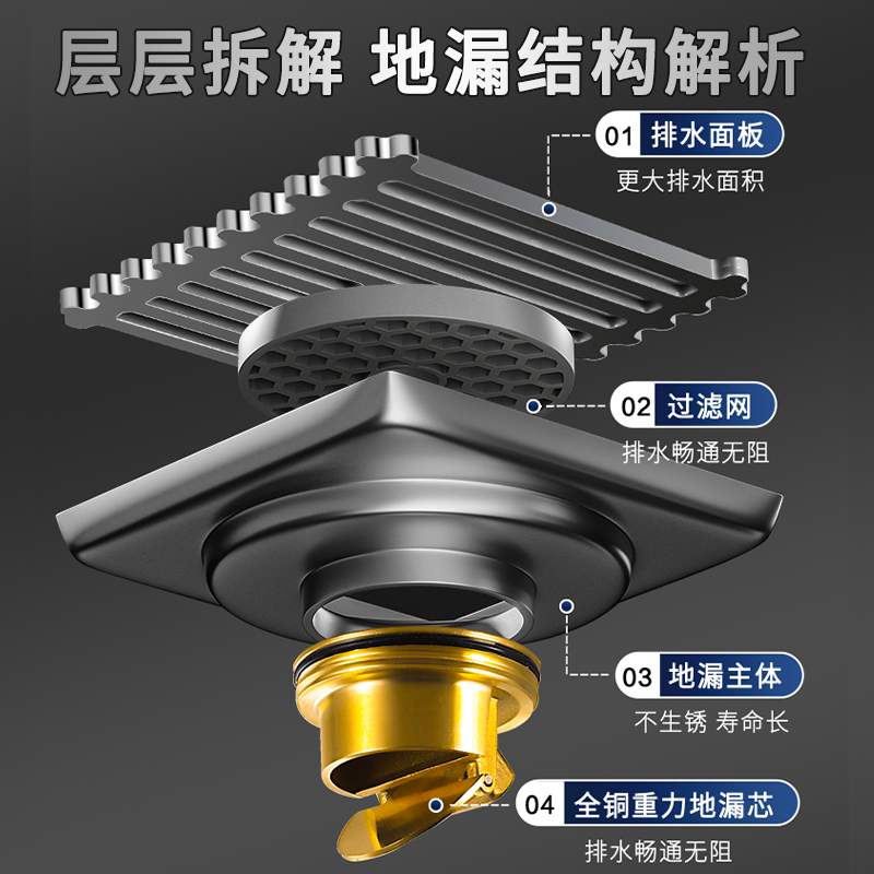 Gun Grey Stainless Steel Floor Drain Deodorant Full Copper Core Toilet Bathroom Strip Shower Washing Machine Sewer 2005-Taobao