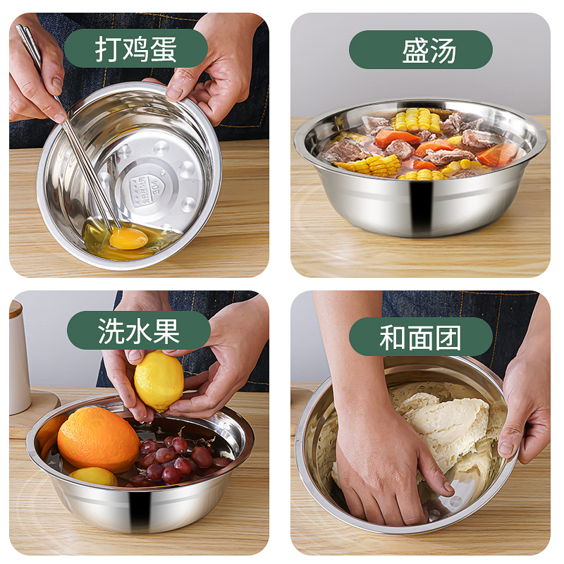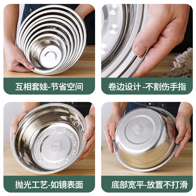 304 Stainless Steel Basin home Kitchen Wash Basin and Bread Basin Baking Stainless Steel Cuisine Basin Soup Basin-Taobao