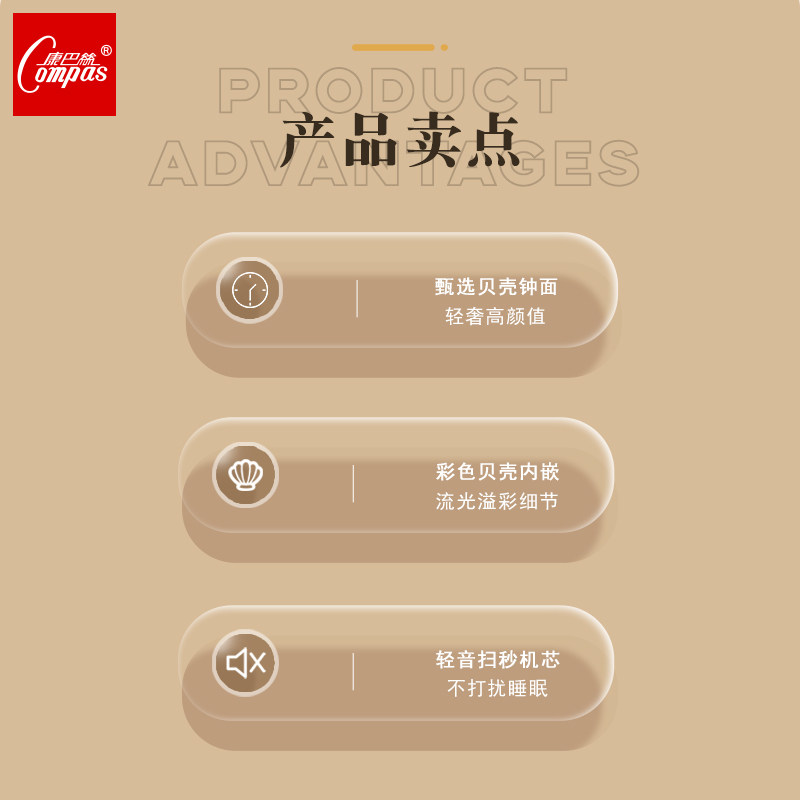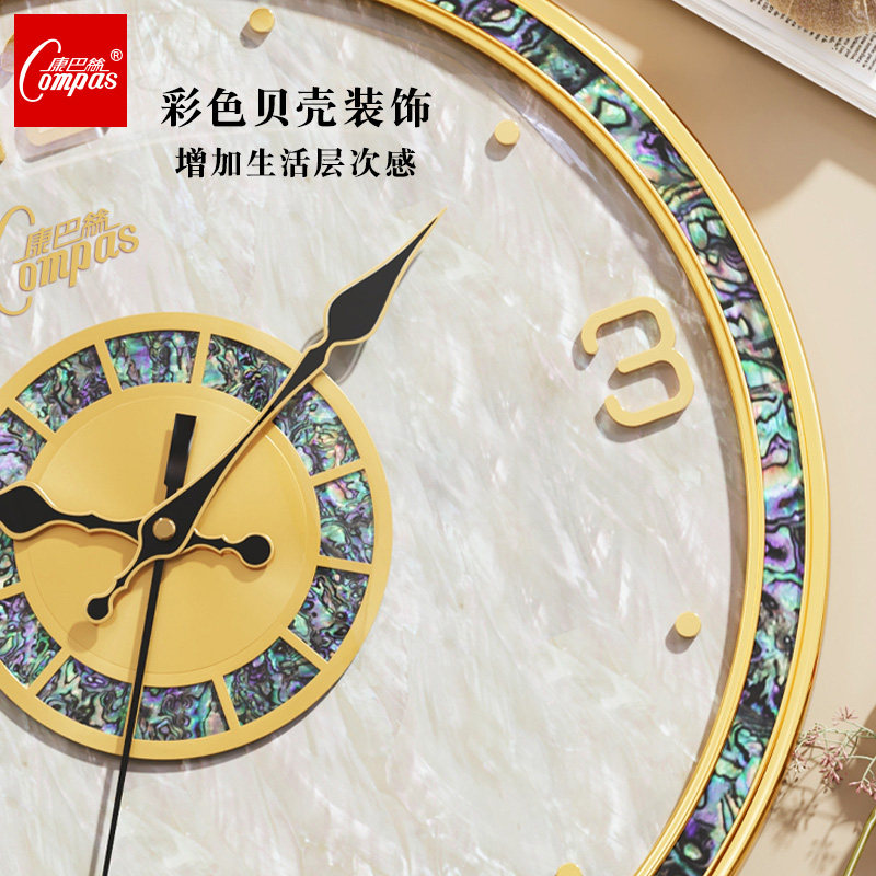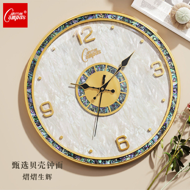 Conpasse clock hanging bell sitting room home atmosphere muted light and luxurious shell decoration clock hanging wall creative quartz clock-Taobao