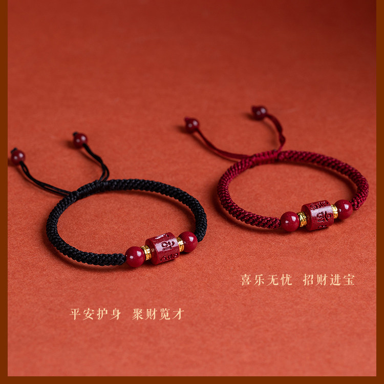 Six words of Zhu Sana red rope bracelet female couple of the life of the year hand weaving a string of black rope male transshipment bead