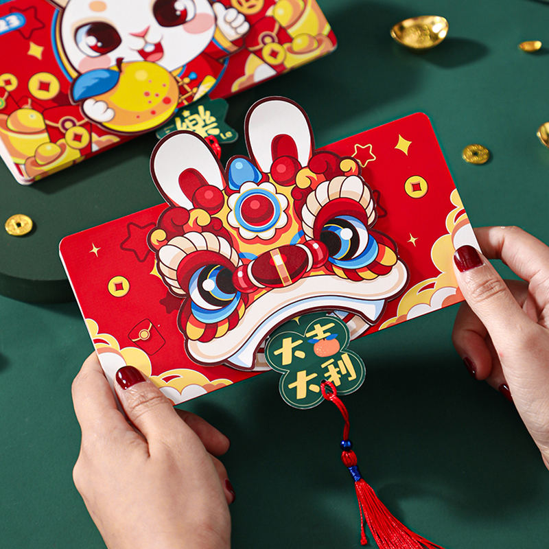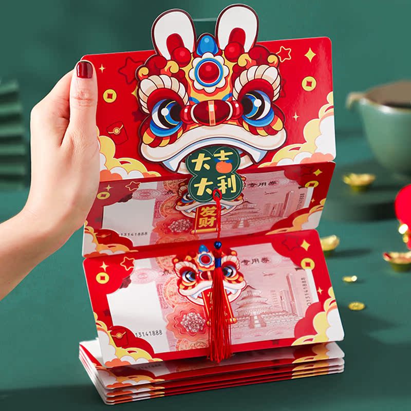 2024 New Year's new country tide Creative waking Lion Dragon folding red packets Multi-clamping stretch Spring Festival Crushed Red Envelopes 2401-Taobao