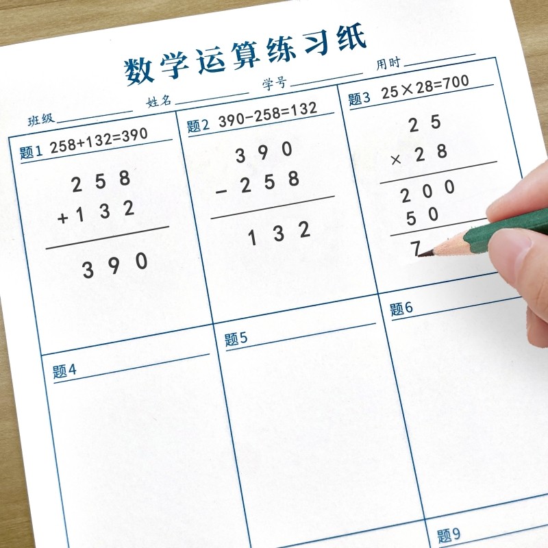 Mathematical operation practice paper primary school students special addition and subtraction multiplication and division method horizontal and vertical digital alignment check draft book