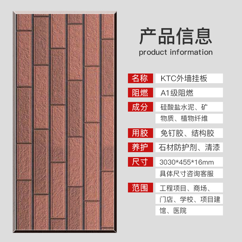 ktc exterior wall hanging board fair-faced concrete interior and exterior wall terracotta board curtain wall hanging board cement brick pattern Rijihua board