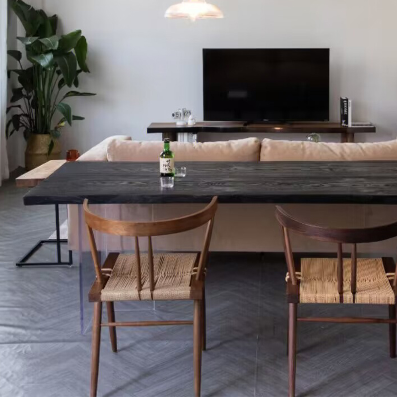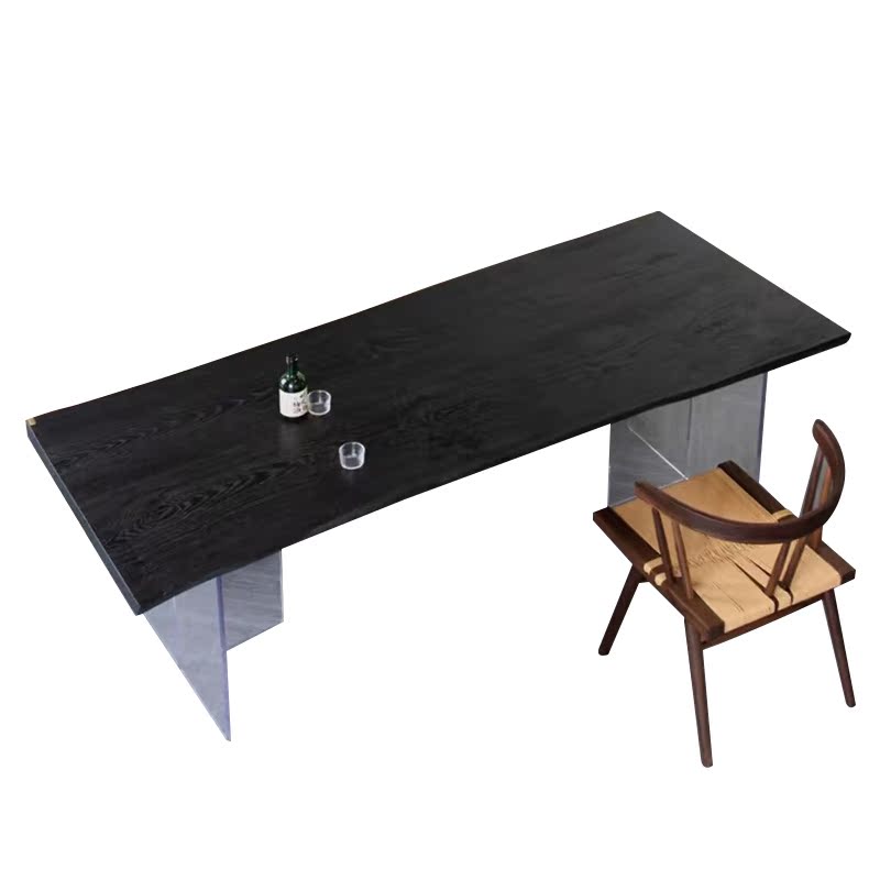 Modern minimal light luxury black whole board tea table household office tea table balcony dining table