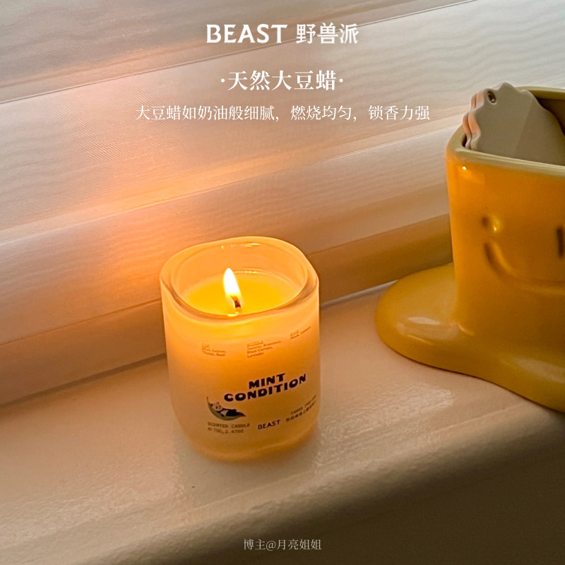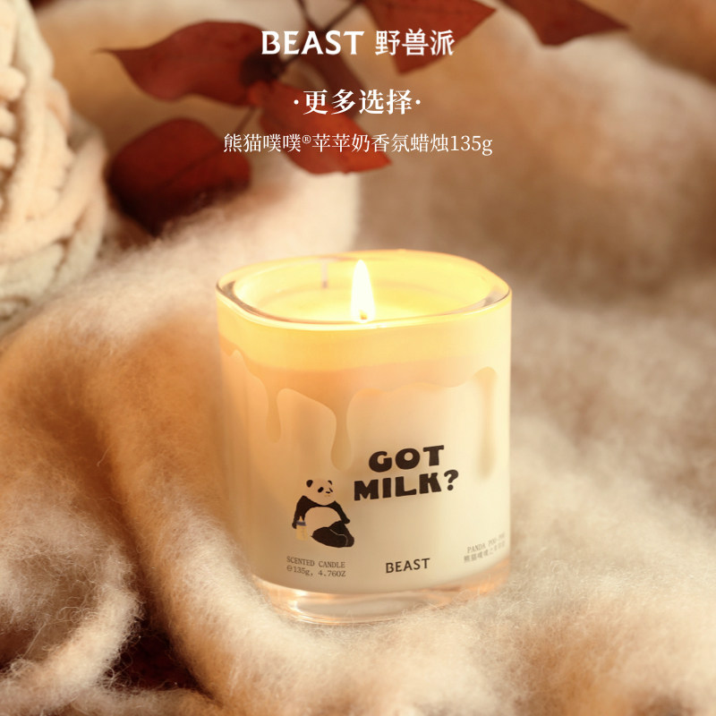 Panda Puff Perfume scented candle Shinto gift box 70g * 3 (new version) - Panda puff apple cider apple milk scented candle 135g Wound Wood Bell Hood Candle Mint Newborn Bell Jar candle