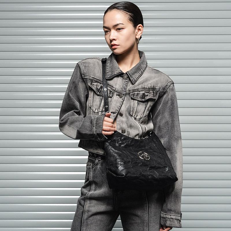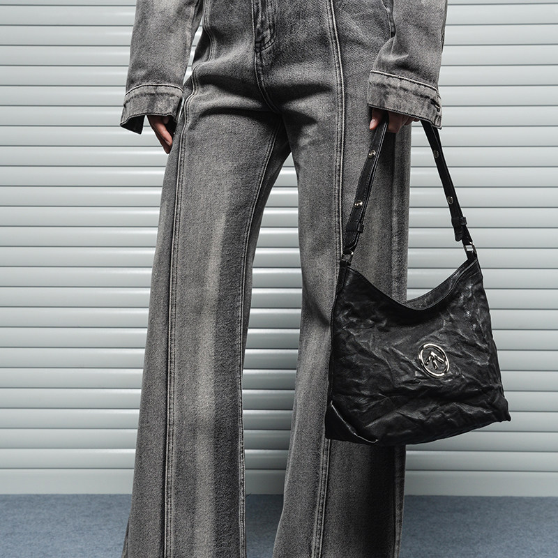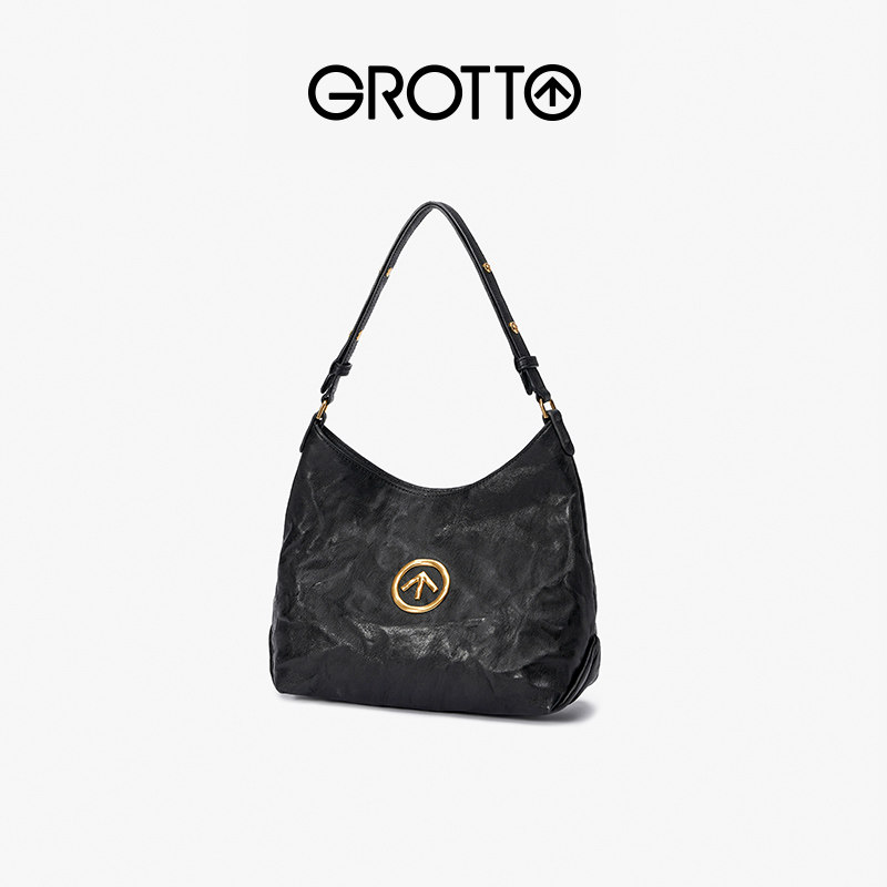 GROTTO LE BLACKSTONE HIOBO SMALL NUMBER FOLDS Tanned Goat Leather Commuter Single Shoulder Sloppy Satchel Soft Bag-Taobao