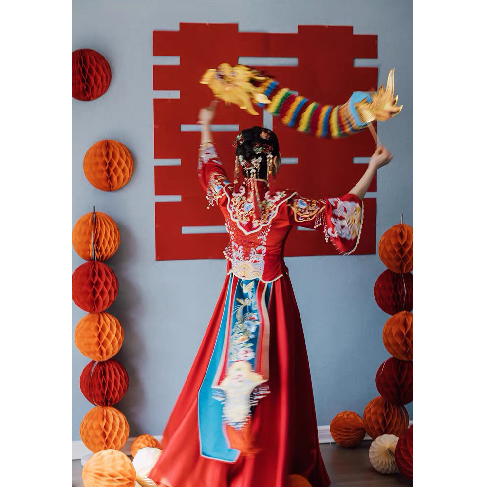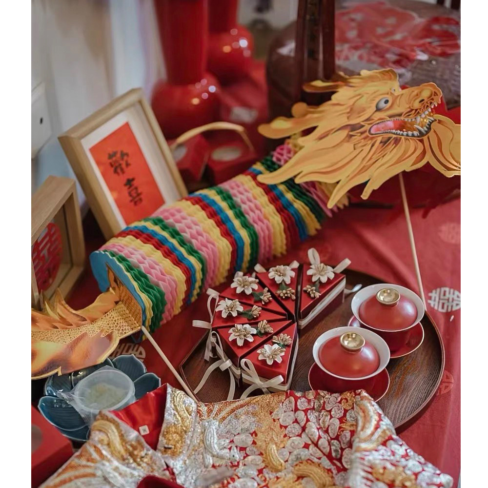 Wedding Festive cutting paper dance dragon folding dragon wedding prop bridal bridesmaids to pick up the filming atmosphere props out of the film-Taobao