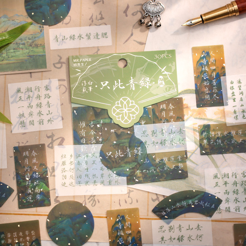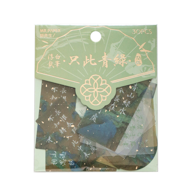 Only this green (sticker pack 30 sheets) Paper cloud cigarette (sticker pack 30 sheets) Mountain fed su (sticker pack 30 sheets) ink dyed bamboo (sticker pack 30 sheets)