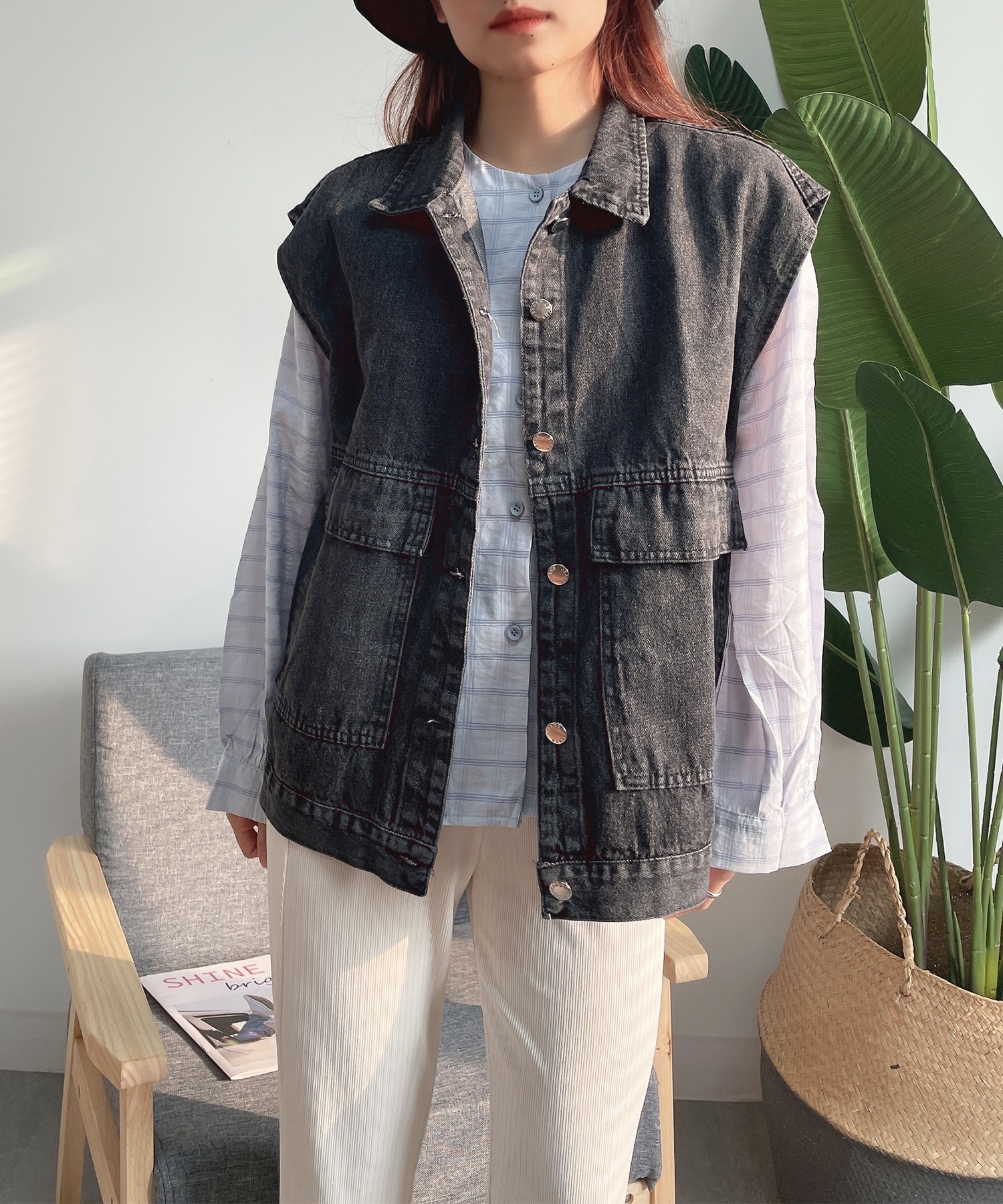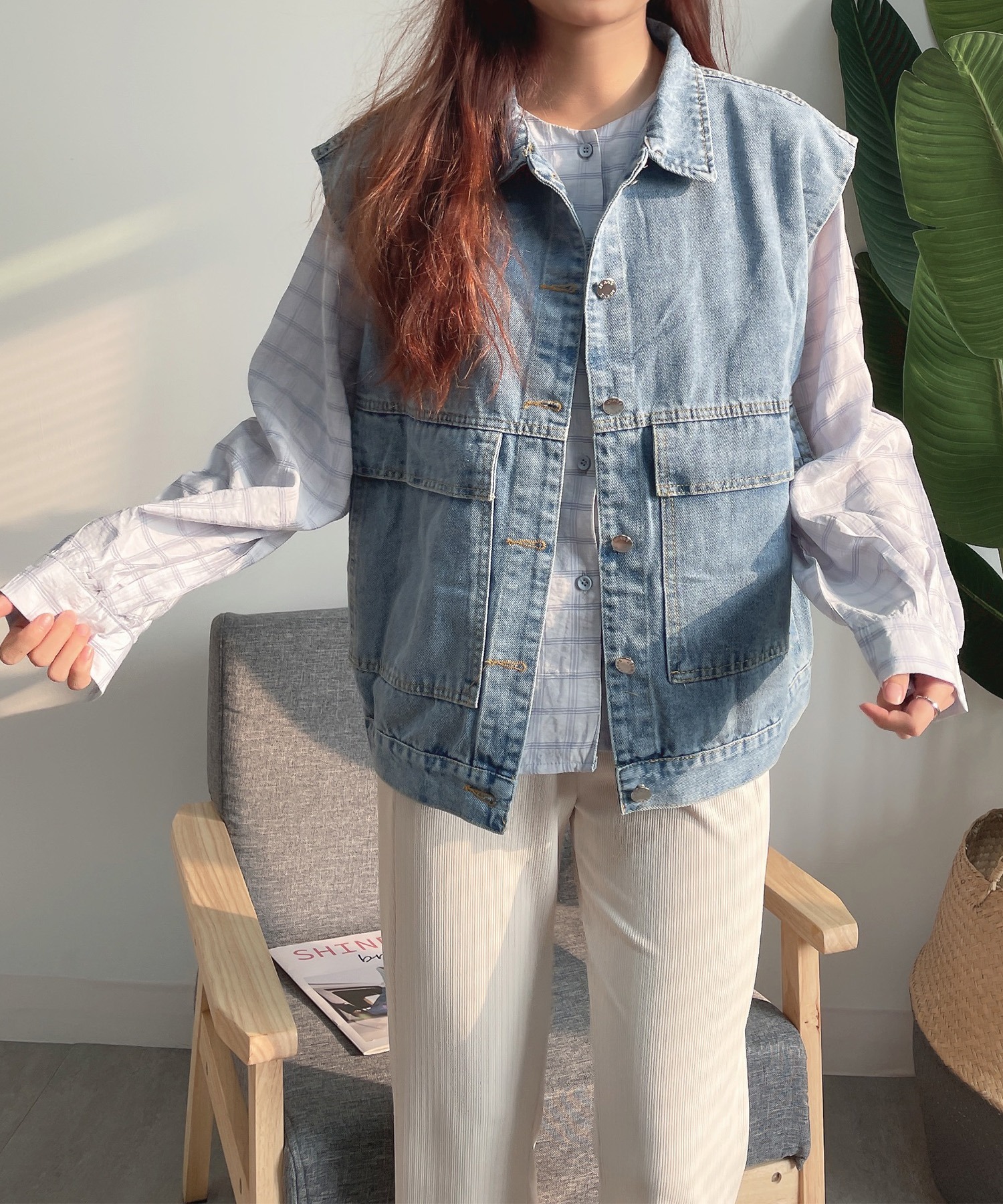 Spring and autumn style outer wear sleeveless denim vest female loose Korean version bf style student tooling waistcoat all-match coat vest