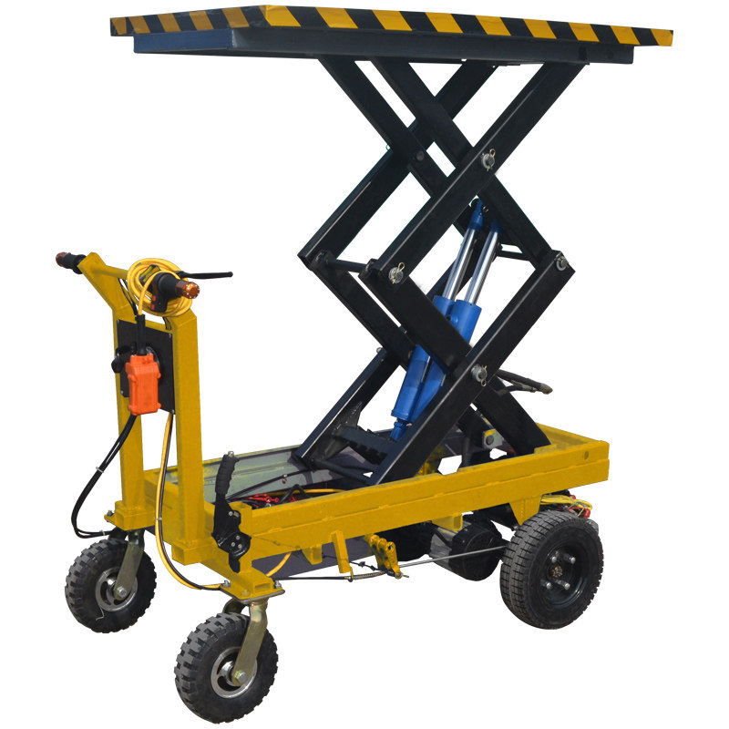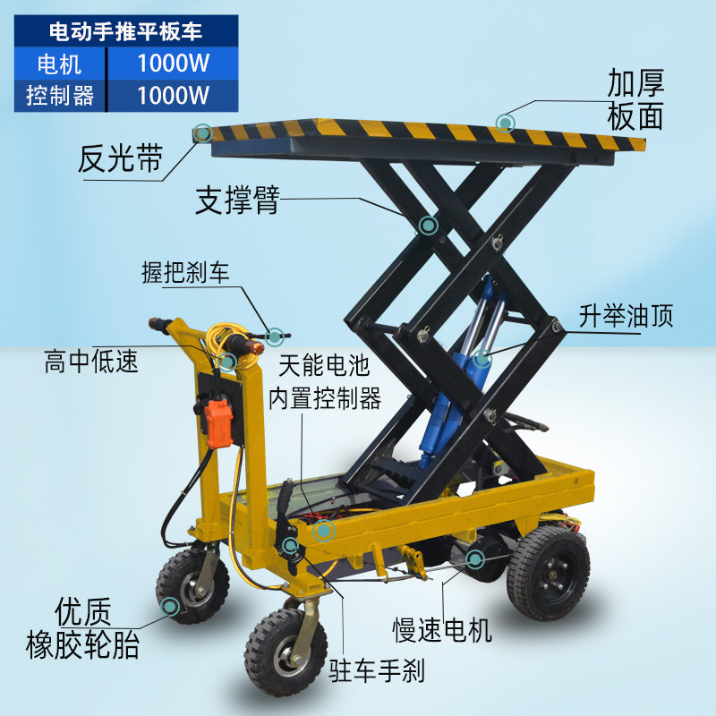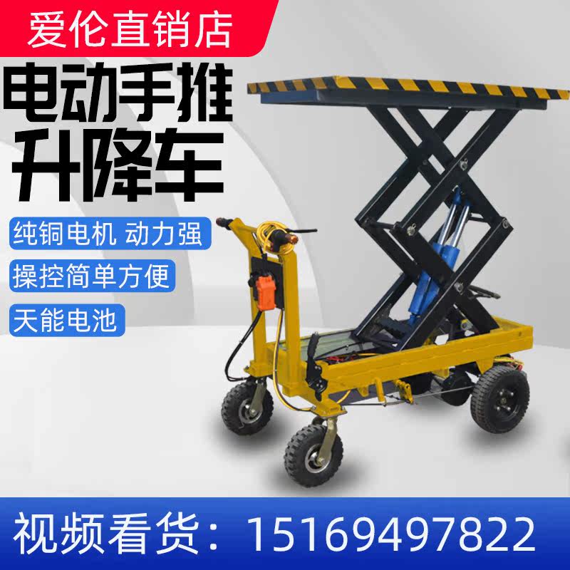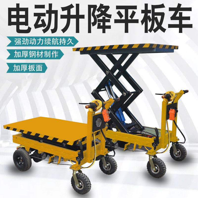 Electric small push hydraulic flat-plate lift cargo shear cargo cut logistics plant four wheel handling transport turnaround