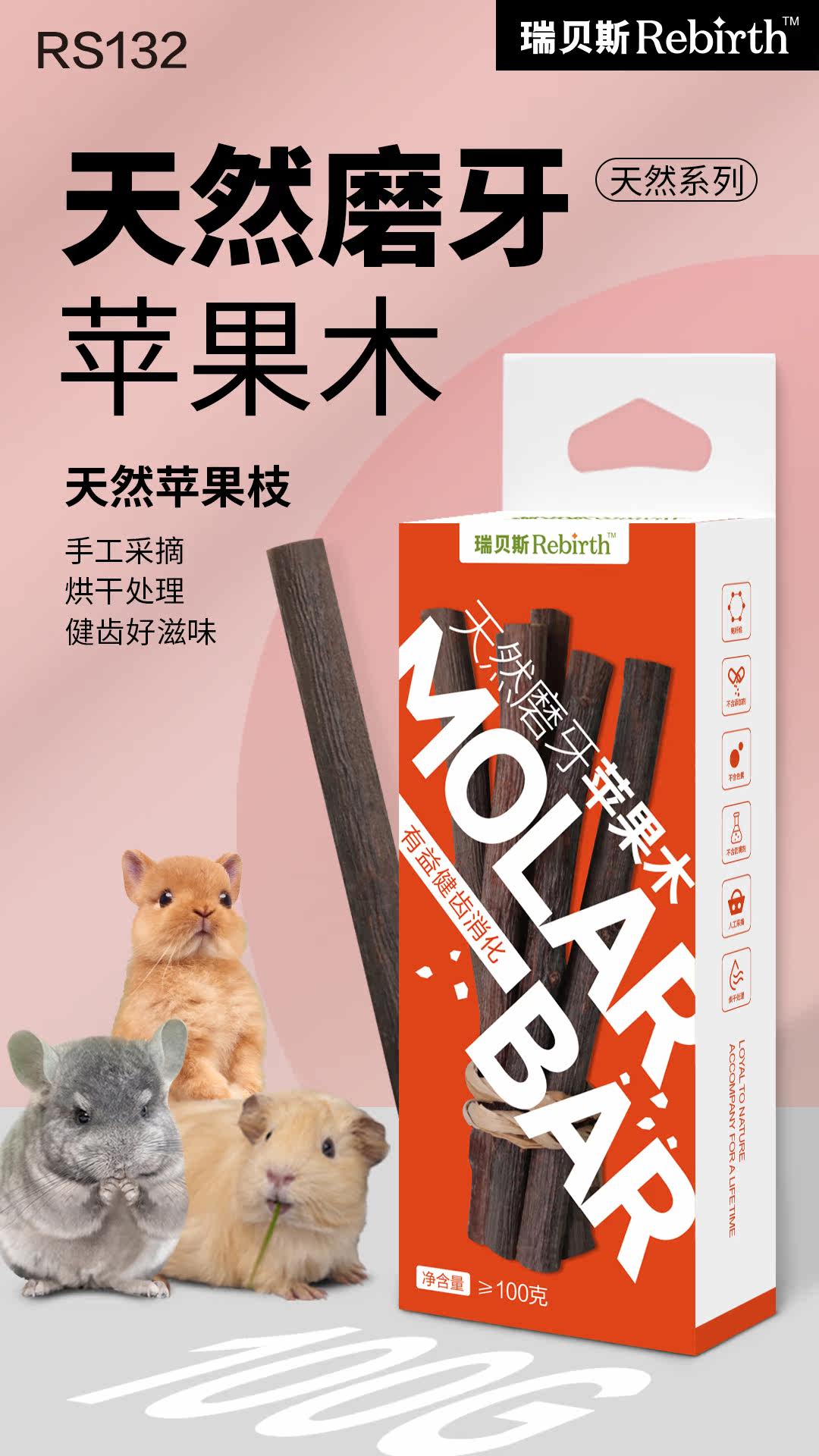 Rebes small pet molar stick hamster golden silk bear chinchilla guinea pig rabbit snacks edible molar snack toys