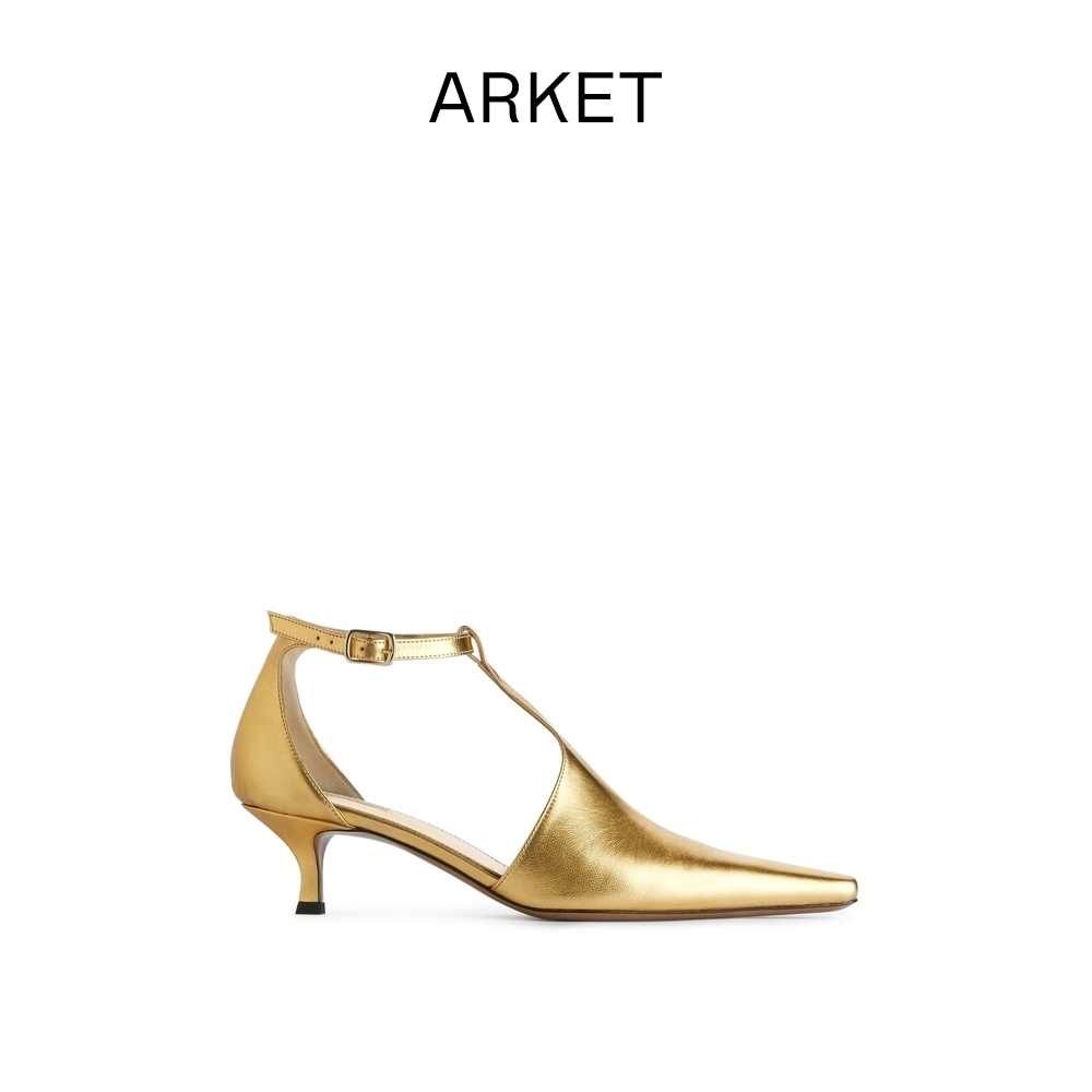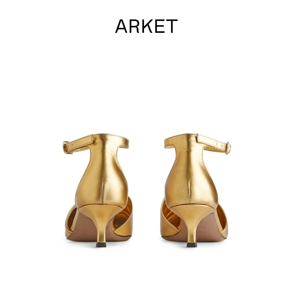 Ms. ARKET Lady Genuine Leather Pointed Kitten Heel Sandal Gold 1116083001-Taobao