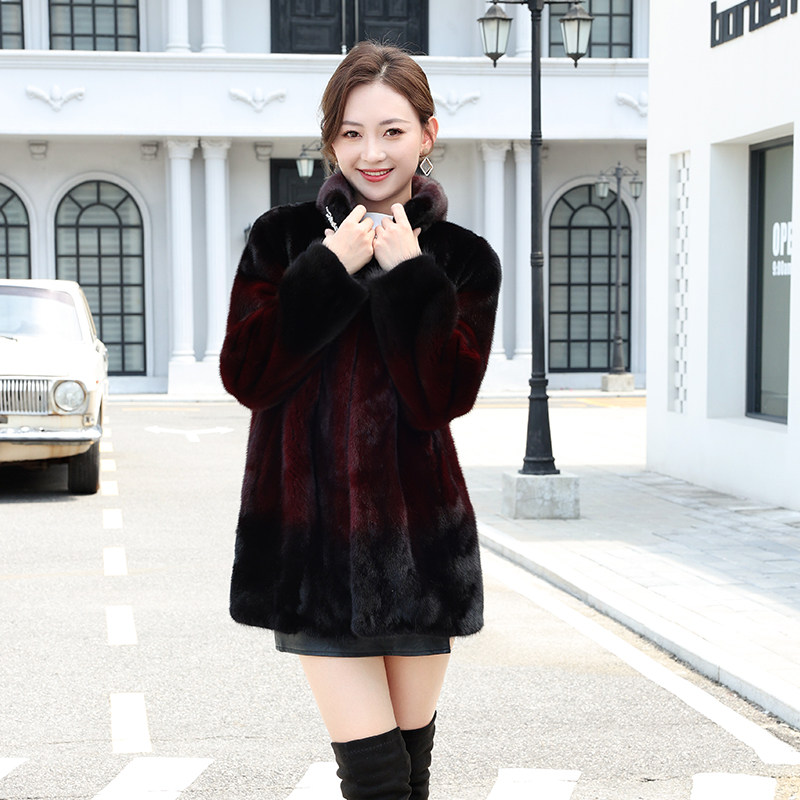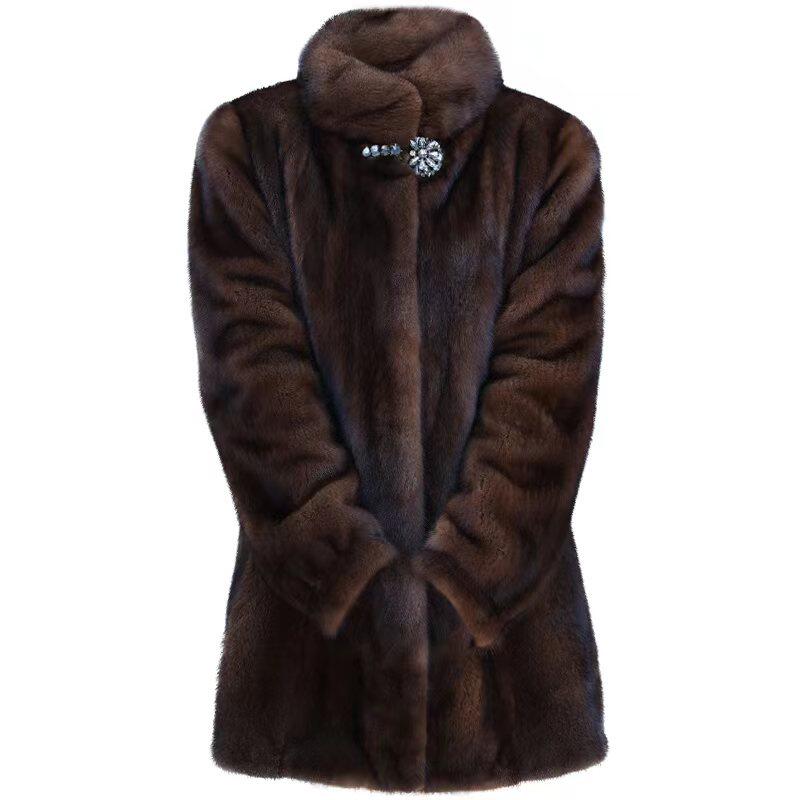 New Henning 2022 Imported Mink Fur Coat Woman Whole Mink Middle Aged Mother Water Mink Fur Coat Mid-Length