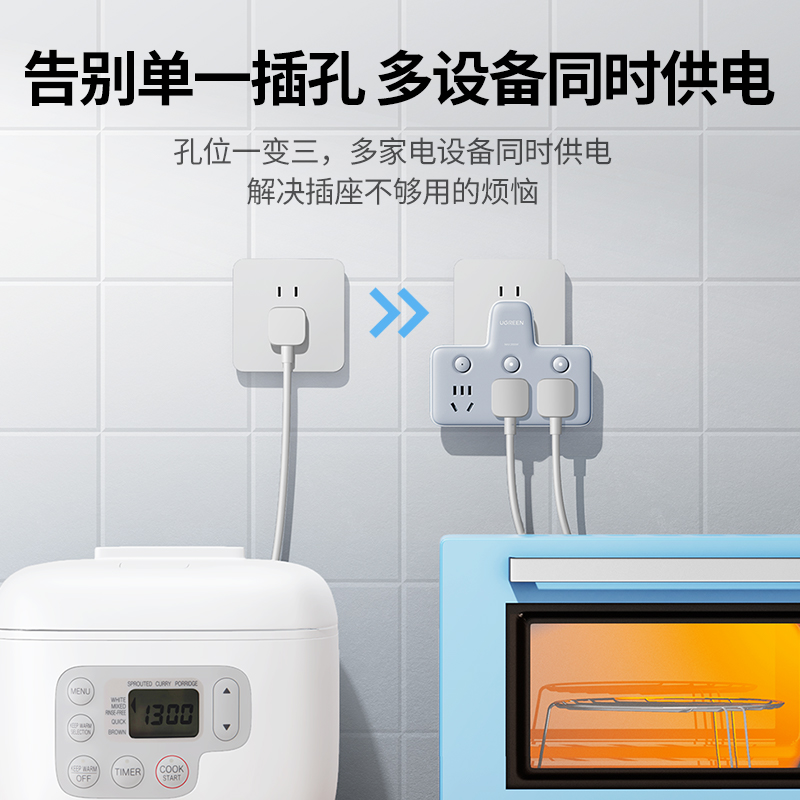 Green couple socket converter multi-function plug extends one-turn more two-three plug panel porous without cable socket