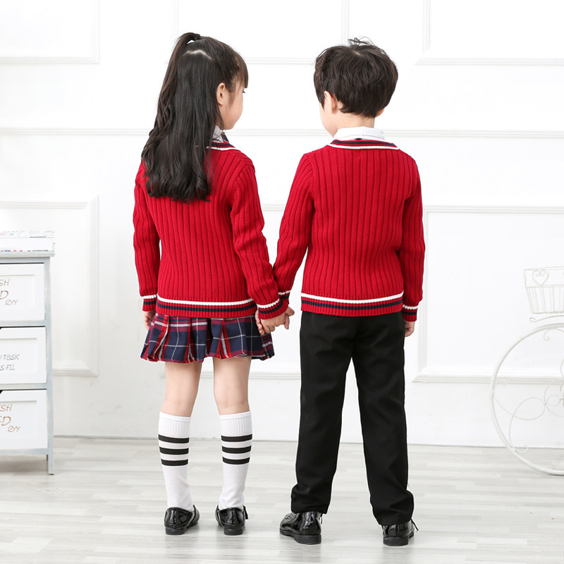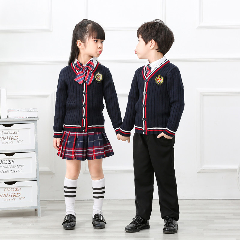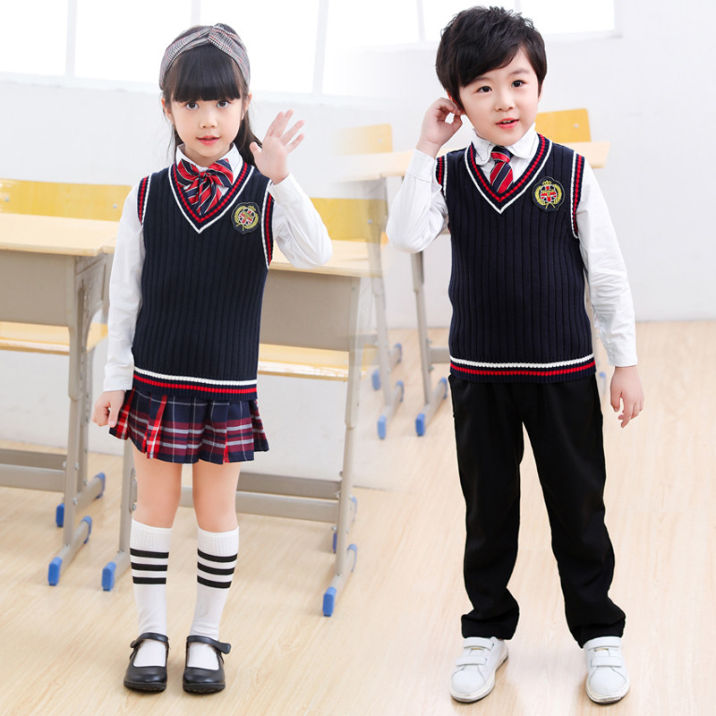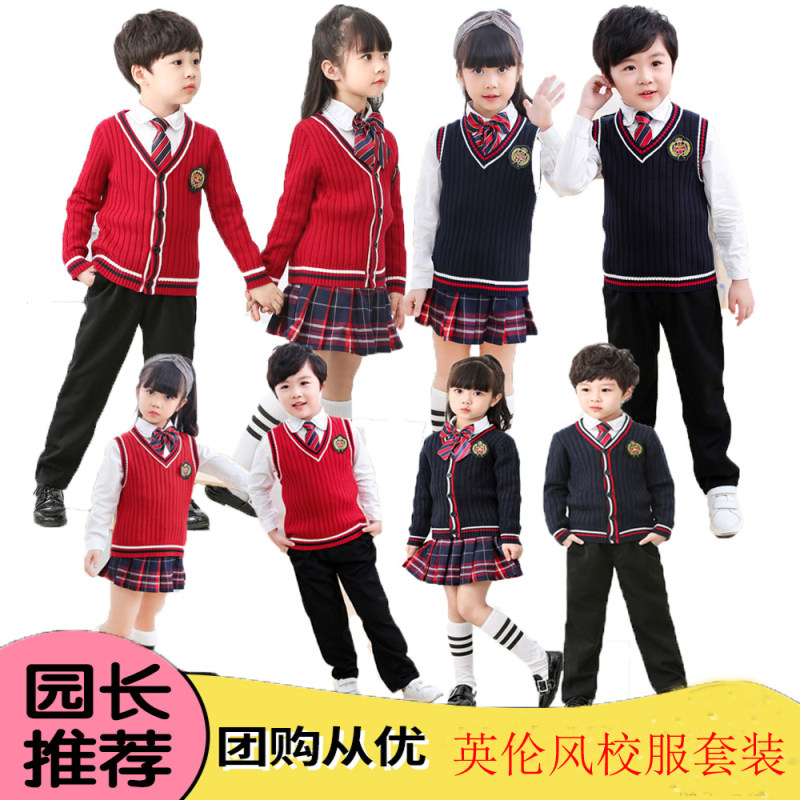 Kindergarten garden clothing autumn school students English wind clothing pure cotton sweater three pieces of children's poem recitation school uniform