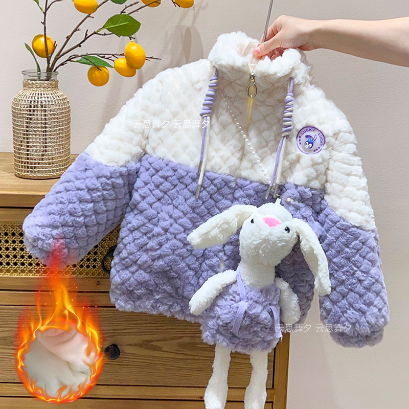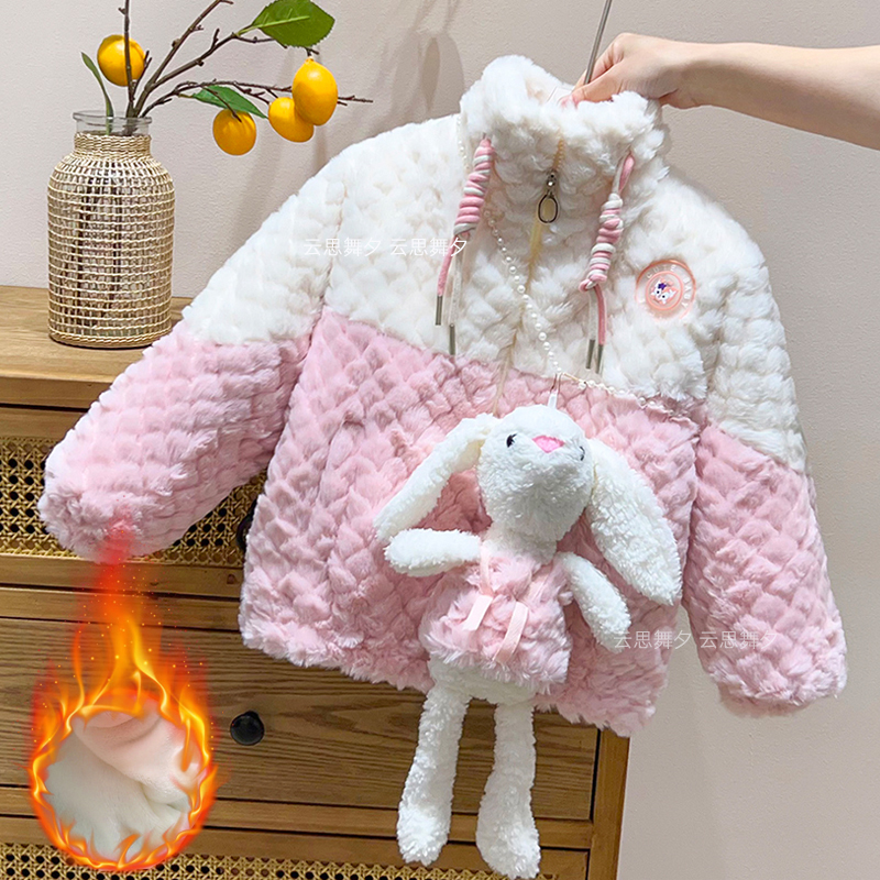 Pro-sub-dress Winter new sweater Girls plus suede Thickened Jacket Mother Woman Dress Warm Hair Sweater Send Doll