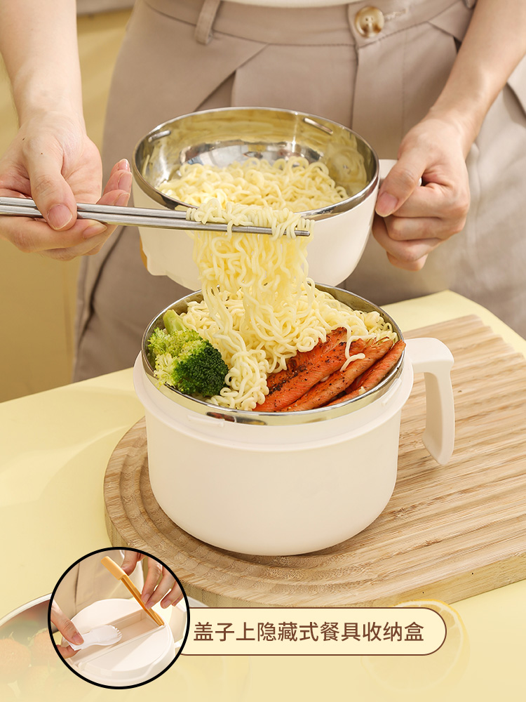 304 stainless steel instant noodle bowl cafeteria lunch box office workers divided layer adult fast food cup large rice cylinder large capacity