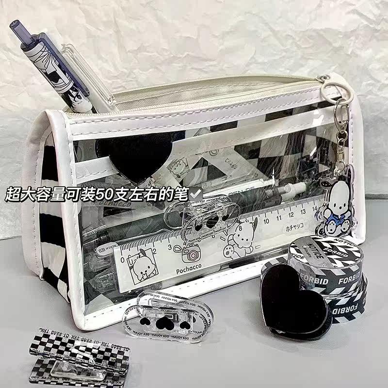 Internet celebrity checkerboard large-capacity transparent pencil case double-layer simple stationery bag middle school students high-value niche pencil case