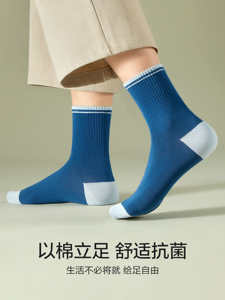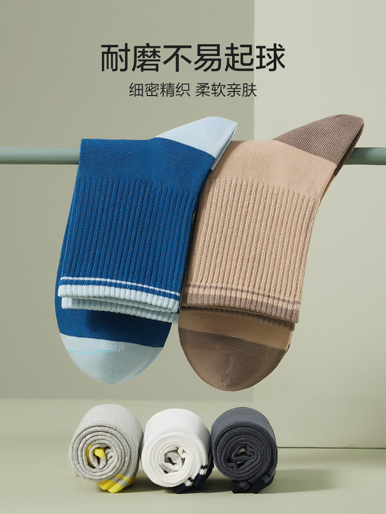 Hengyuan Xiang Socks Men's Middle Cylinder Socks Autumn Winter Pure Cotton Deodorant Suction Sweaty Black Sports White Antibacterial Full Cotton Long Socks-Taobao