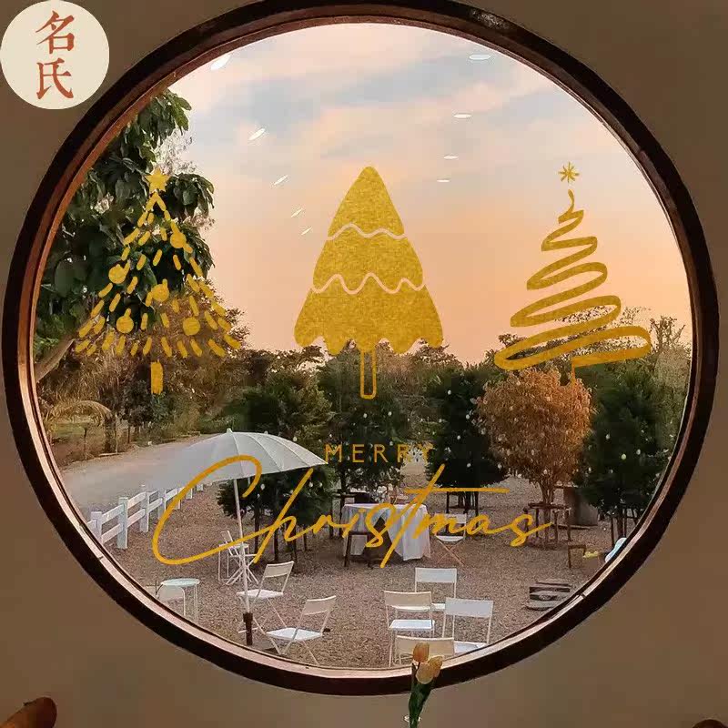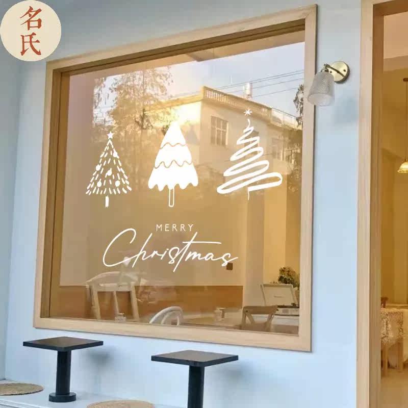 Three Christmas trees Christmas glass stickers mall store holiday decoration layout window stickers wall stickers window grilles