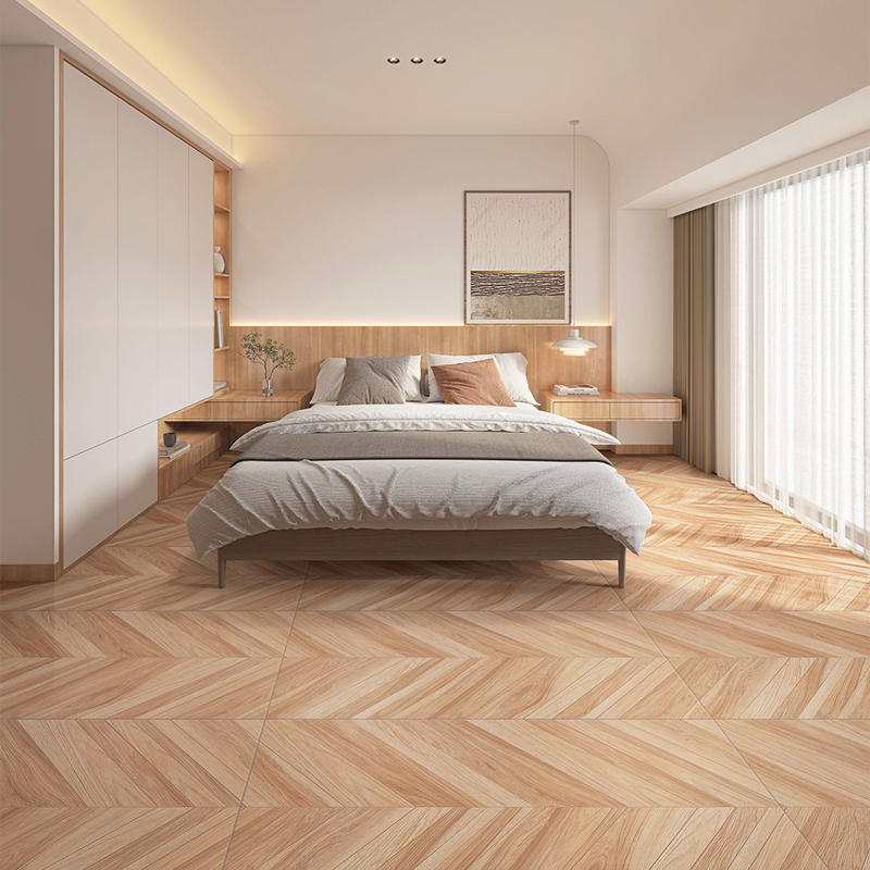 Full - ceramic wood tile 600X 1200 Fish bone wood tile living room bedroom anti - slip soft - tile cream wind