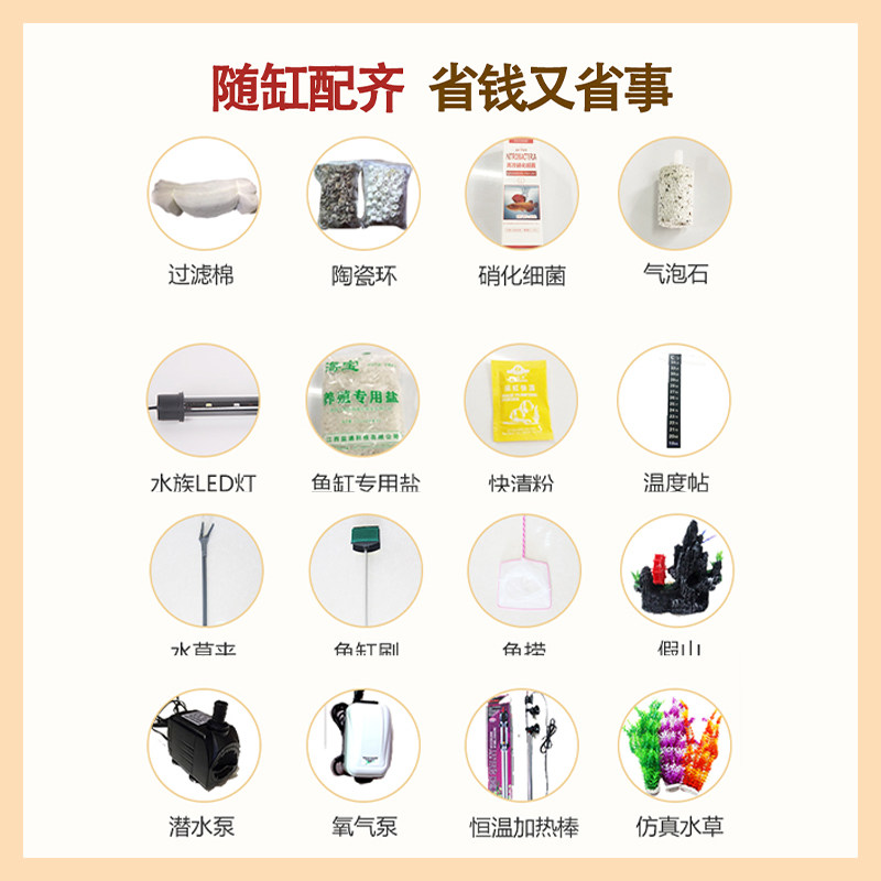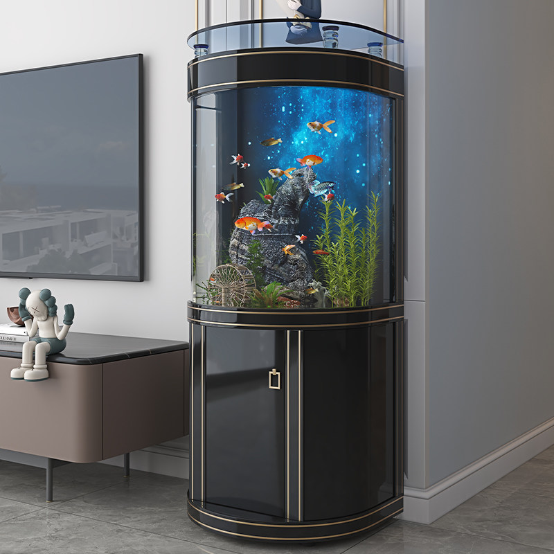 Light luxury semi-circular arc bottom filter fish tank living room home small and medium-sized ecological aquarium office glass goldfish tank