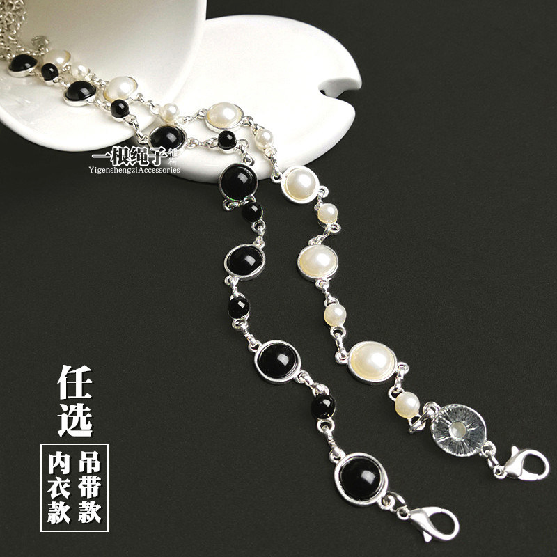 Underwear Shoulder Strap Smear Skirt Harness Metal Chain Accessories Black White Beads Exposed removable Exchange of Exchanged Letters Bra Strap-Taobao