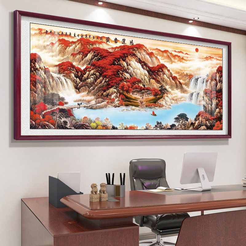 2023 New Purple Gas East to the Mural leaning on Mountain Tutu State paintings Office scenery landscape painting Living room Decorative Calligraphy Painting-Taobao