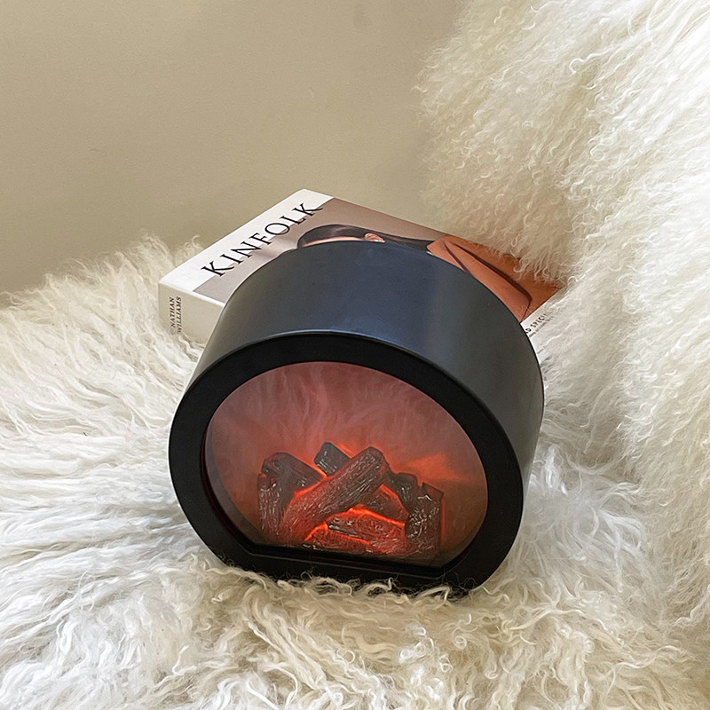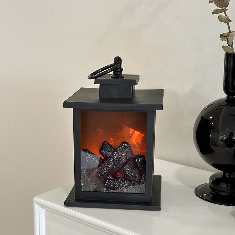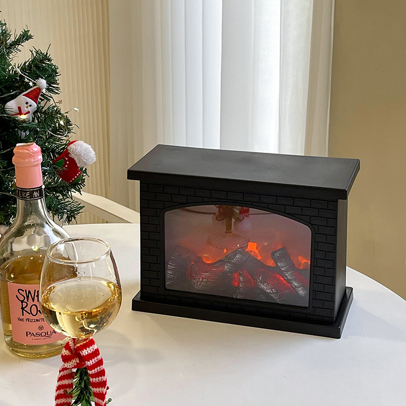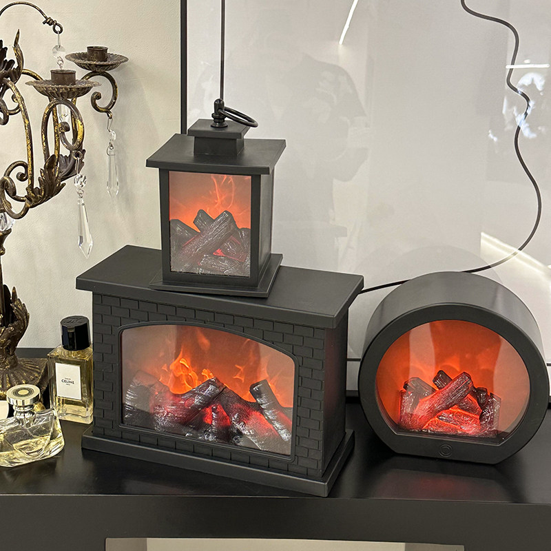 In autumn and winter atmosphere lights New Year home soft-fitted café home flame lights burning fireplace